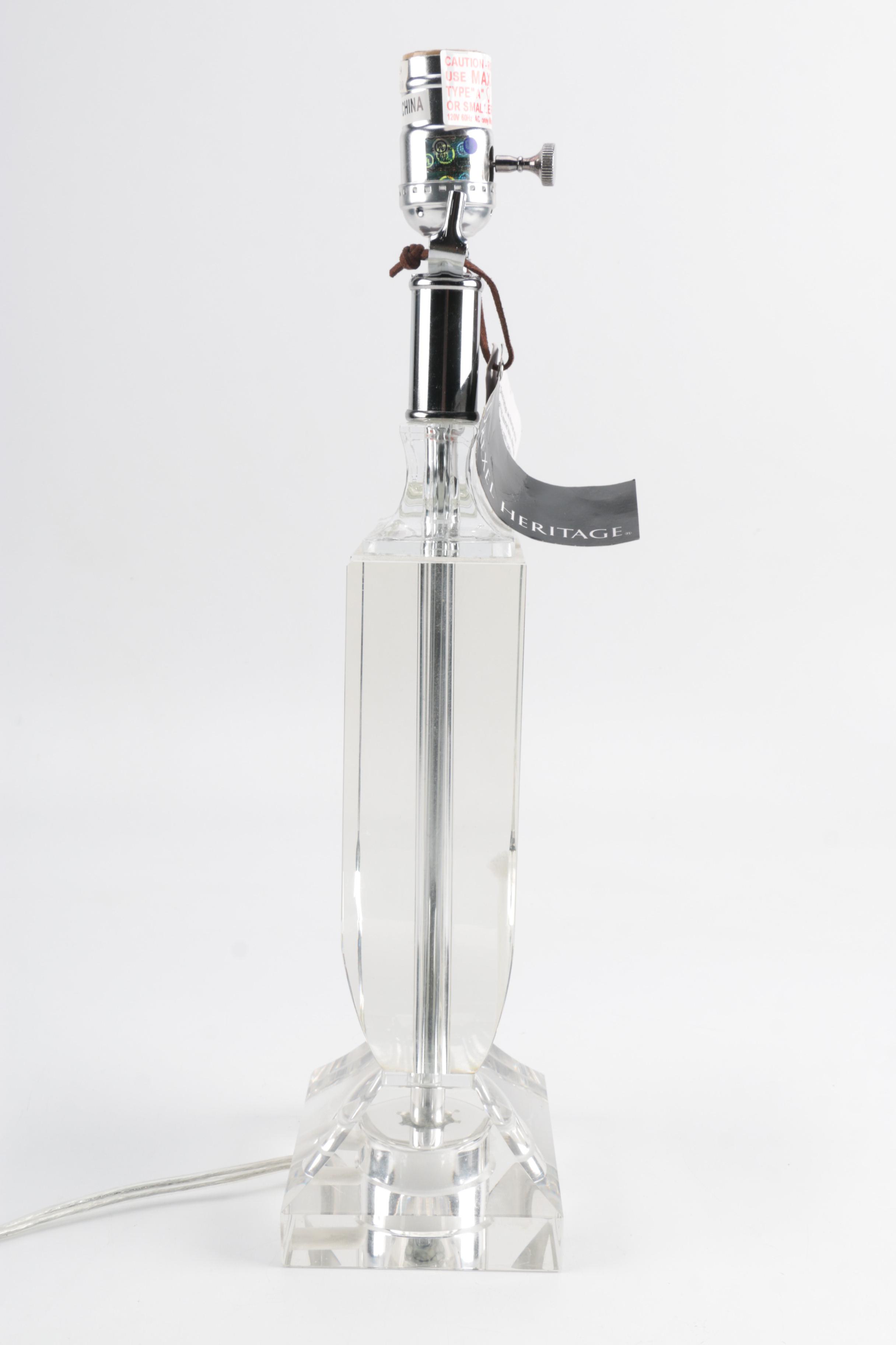 The drexel heritage lamp is electric, uses lampshades to shield our eyes from the direct rays of the machine's light producing element, and is typically either.